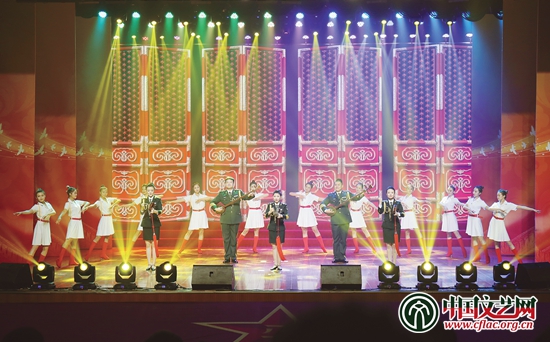 图为来自南部战区陆军文工团的逗笑、逗乐、杨蔓、杨苗、杨倩等带来的曲艺联唱《辉煌九十年》。